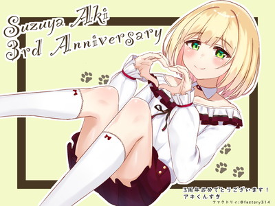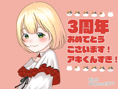 このサイトは にじさんじ所属バーチャルライバー 鈴谷アキくんの活動3周年を記念して企画されました。 アキくんのファンであるアキネコの皆さんから募ったたくさんのイラストとメッセージを掲載しています。 ぜひ皆さんと一緒にこの一年を振り返っていただきお祝いしていただけたら嬉しいです!